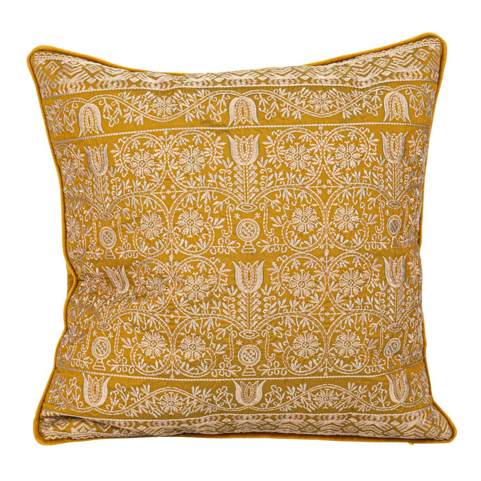 This cotton velvet pattern and piping pillow is a gorgeous accessory that will add elegance and charm to any space. The pillow features an embroidered pattern in chartreuse color, creating a stunning and unique design. The pillow also has piping in the same color, adding texture and dimension. The pillow cover is made of cotton velvet, a smooth and luxurious fabric that is durable and cozy.