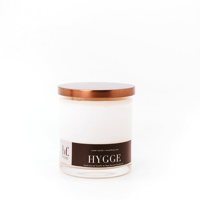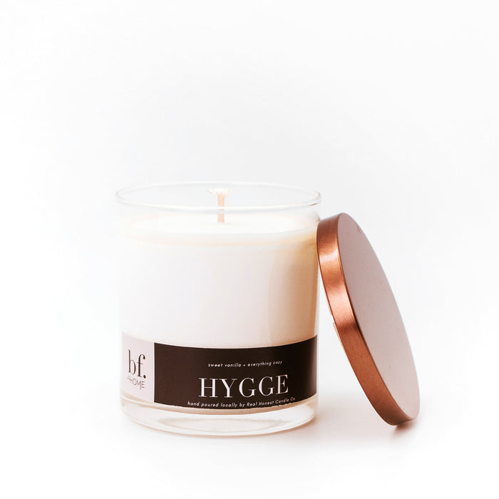 Our Hygge candle is an exclusive scent to bfearless. at HOME and hand poured locally.