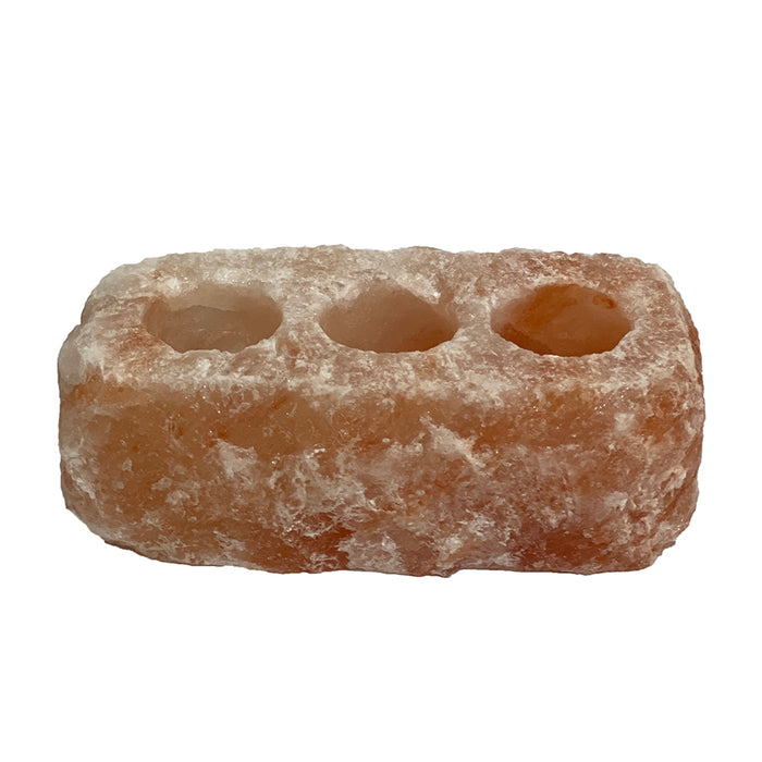 Create a relaxing atmosphere in your home with the natural beauty and potential benefits of this Himalayan Salt Triple Tealight Candle Holder.